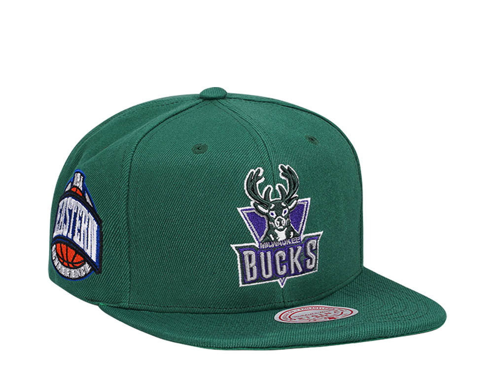 Mitchell & Ness Milwaukee Bucks Conference Patch Green Snapback Cap